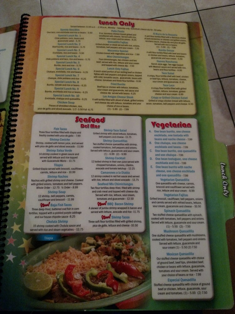 The menu features tantalizing options like the Amigo Super, a tempting combination of five enchiladas, or the crispy Pollo Fundido. Seafood lovers can indulge in the Grilled Shrimp or the luxurious Seafood Burrito, both generously topped with creamy sauces. Vegetarian options abound, ensuring everyone finds a favorite.